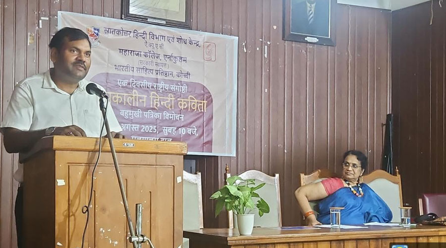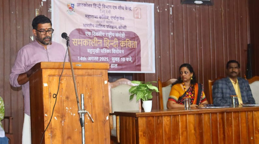 Kochi: As part of the 150th anniversary celebrations of Maharaja’s College, the Department of Hindi, in collaboration with the Bharatiya Sahitya Pratishthan, Kochi, organized a one-day national seminar. During the event, the magazine Bahumukhi, published by the Bharatiya Sahitya Pratishthan, was officially released.